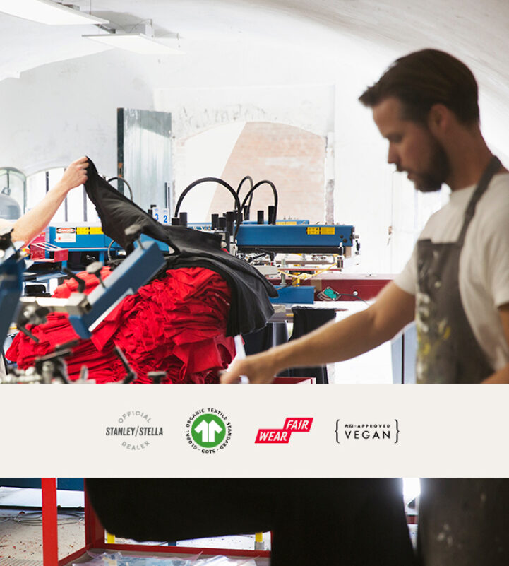 Bij Katoenfabriek streven we naar duurzame zeefdruk (GOTS-gecertificeerd) van topkwaliteit, uitsluitend op biologisch of gerecycled textiel dat lang meegaat, gecombineerd met een service die je nergens anders vindt.