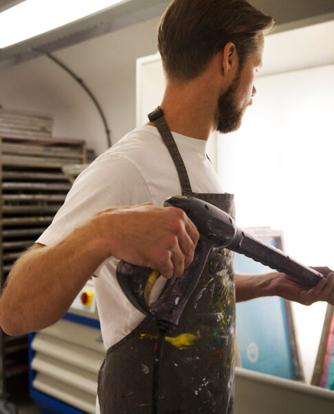 - Zeefdrukken: We printen de film, belichten de schermen, mengen de watergedragen inkten en de zeefdrukmolen kan gaan draaien!